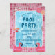 Crea un impacto con esta divertida y vibrante invitación personalizada para una fiesta junto a la piscina, perfecta para celebrar cumpleaños bajo el sol. Con un borde de baldosas rosas elegante, fondo de agua de piscina, flamencos flotantes, conchas tropicales y copas de cóctel, esta invitación marca el tono para una animada fiesta de verano.