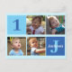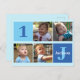Tarjeta postal de invitación de cumpleaños cuadrada genial para un bebé o niño pequeño. Celebre el cumpleaños de su hijo con fotos lindas de ellos en esta tarjeta postal con cuadrados azules adorables y su propia fotografía. Agregue su nombre y edad.