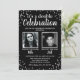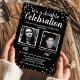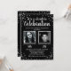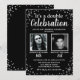 Invitación de cumpleaños plateada negra con 2 foto
