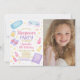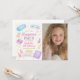 Prepárate para una noche de diversión y amistad con esta invitación de cumpleaños de la moda para dormir! Esta tarjeta vertical de 5 x 7" es perfecta para un fiesta de chicas de moda, con elegantes dibujos en acuarela de pijamas, estrellas, palomitas de maíz y artículos esenciales para hacer sonar con suaves colores pastel. Fácil de personalizar con texto editable, es ideal para edades de 7 a 12 años. Imprimido en material de cartón de alta calidad, esta invitación combina encanto y elegancia, marcando el tono perfecto para una noche inolvidable!