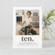 Una moderna invitación para cumplir 10 años con tu propia foto y la palabra "diez" debajo. También puede editar todos los colores y estilos del texto - sólo tiene que hacer clic en el botón 'Personalizar' -> 'Editar usando la herramienta de diseño'.