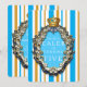 Invitación de cumpleaños real oro y azul con corona. Personalice la parte delantera y trasera para cualquier evento. Artículos coincidentes disponibles.