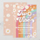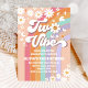 Celebra con estilo con esta invitación de cumpleaños retro arcoíris que presenta colores pastel divertidos, margaritas sonrientes, signos de paz y motivos inspirados en los años 70. Perfecta para fiestas infantiles, este vibrante diseño combina la nostalgia con el encanto moderno para crear un recuerdo que los invitados amarán. Personaliza con el nombre de tu hijo, los detalles de la fiesta y haz que su día especial sea inolvidable. Ideal para segundos cumpleaños, baby showers o cualquier celebración llena de diversión con un ambiente hippie.