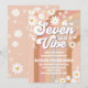 Celebra con estilo con esta invitación de cumpleaños retro con rayas de arcoíris pastel, margaritas, corazones, estrellas, mariposas y una cara sonriente alegre. Perfecta para fiestas infantiles, este diseño inspirado en hippies combina la nostalgia de la vibra flower-power con un encanto moderno. Personaliza con el nombre de tu hijo, edad y detalles de la fiesta para crear un recuerdo único que los invitados amarán. Ideal para cumpleaños número 7, pero fácilmente adaptable para cualquier edad, esta invitación divertida añade paz, amor y diversión a tu celebración.