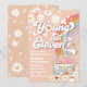 Celebra con estilo groovy con esta invitación de cumpleaños retro hippie que presenta margaritas pastel, mariposas, arcoíris y una colorida furgoneta de la paz. Perfecta para fiestas infantiles, este diseño juguetón combina las vibraciones de la década de 1960 con diversión moderna, lo que la hace ideal para cumpleaños de preadolescentes. Personaliza con los detalles de tu fiesta y establece el tono para una celebración alegre y llena de paz que tus invitados amarán.