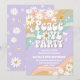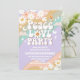 Celebra con estilo retro con esta invitación de cumpleaños inspirada en los años 60, que presenta rayas de arcoíris pastel, margaritas, signos de paz, mariposas y vibras divertidas. Perfecta para cumpleaños de niños, este diseño colorido establece el tono para una celebración divertida, alegre e inolvidable. Personaliza con los detalles de tu fiesta para crear una invitación única que difunda paz, amor y alegría. Ideal para fiestas temáticas hippie, retro o de arcoíris, esta invitación es llamativa y memorable.