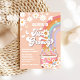 Celebra con estilo con esta invitación de cumpleaños de arcoíris retro que presenta margaritas, mariposas y un diseño de furgoneta de la paz. Perfecta para fiestas infantiles, esta tarjeta inspirada en los años 70 combina colores pastel alegres con vibraciones hippies divertidas. Personaliza con los detalles de tu evento y establece el tono para una celebración divertida, única y memorable. Ideal para cumpleaños temáticos boho, retro y flower power.
