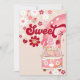 Celebra el primer cumpleaños de tus pequeños con estilo retro con esta invitación "Dulce Uno". Con una furgoneta rosa alegre decorada con flores, signos de paz y acentos de arcoíris, este diseño juguetón está rodeado de margaritas, corazones, fresas y notas musicales para un ambiente caprichoso de la década de 1960. Perfecta para una fiesta de cumpleaños divertida y colorida, esta invitación combina la nostalgia con el encanto moderno para deleitar a los invitados. Personaliza fácilmente para tu evento y haz que tu celebración sea inolvidable con este vibrante tema retro.