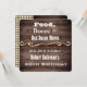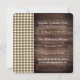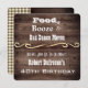 Una buena invitación para el cumpleaños que hará que los invitados rieguen y les haga saber que es hora de celebrar. Una valla rústica de madera con el mensaje "Food, Booze & Bad Dance Moves" añade nombre y edad. La parte trasera tiene un modelo de gingham de país beige fresco con personalización línea por línea.