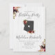 Invitaciones de cumpleaños de destino rústico chic de campo con arreglos florales de acuarela de madera de granero blanco y marsala borgoña y plumas boho ~ ¡Revisa mi tienda para ver toda la colección con este diseño!