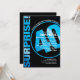 Esta invitación de cumpleaños, alegre y divertida, hará saber a los clientes lo más importante, ¡es una sorpresa! Brillante azul sobre negro con un gigante 40 con la redacción de su personalizado para una invitación sorpresa de cumpleaños ganadora. ¡La espalda les recuerda a shhhh!