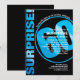 Esta invitación de cumpleaños, alegre y divertida, hará saber a los clientes lo más importante, ¡es una sorpresa! Brillante azul sobre negro con un gigante de 60 con la redacción de su personalizado para una invitación sorpresa de cumpleaños ganadora. ¡La espalda les recuerda a shhhh!