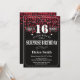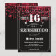 Invitación de cumpleaños sorpresa con purpurina roja para 16 años. Tipografía blanca. Fondo de pizarra negra y blanca. Cumpleaños infantil. Cumpleaños de hombre o mujer. Invitación de cumpleaños para niños, niñas, adolescentes o jóvenes. 13, 15, 16, 18, 20, 21, 30, 40, 50, 60, 70, 80, 90, 100 años. Cualquier edad. Para personalizar aún más, haga clic en el botón "Personalizar" y utilice nuestra herramienta de diseño para modificar esta plantilla.