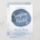 Crea una impresión única con esta llamativa invitación de cumpleaños sorpresa. Cuenta con una mancha de color azul estilo acuarela hacia el centro. Debajo de esta mancha azul hay un espacio para tus detalles únicos en azul marino oscuro.