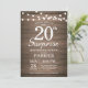 Invitación de cumpleaños sorpresa rústica de 20 añ