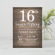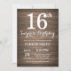 Invitación de cumpleaños sorpresa rústica número 16. Fondo de madera rústica. Cumpleaños vintage retro. Cumpleaños de niños. Invitación de cumpleaños para niño o niña. 13 15 16 18 20 21 30 40 50 60 70 80 90 100, cualquier edad. Para una mayor personalización, haga clic en el botón "Personalízalo" y utilice nuestra herramienta de diseño para modificar esta plantilla.