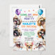 Invitaciones de cumpleaños de perro. 12 años (o cambiar a cualquier edad). Para niño o niña. Ilustración de cachorro feliz y sonriente diseñada con confeti y globos rodeados de razas de perros pequeños populares como shih tzu, pug, maltese, chihuahua, poodle y beagle. Todo el texto es editable con el nombre del niño, edad, hora de la fiesta, dirección y RSVP.