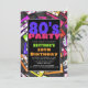 Elegante y editable invitación de cumpleaños de los años 80 con un colorido conjunto de cintas de casete de fondo y una plantilla de celebración de cumpleaños que es fácil de personalizar. Todos los estilos de fuente, tamaños y colores se pueden cambiar haciendo clic en el enlace posterior del personalizar después de la personalización.