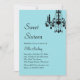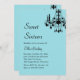 Una lámpara de araña de cristal, un estilo cuidado y un toque de color turquesa a la última dan el tono a esta invitación y evento. Se muestra en el documento básico; sin embargo, sugiero el brillo del papel de hielo metálico para un poco más de brillo.