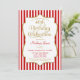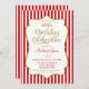 Una elegante invitación de cumpleaños en rojo y oro, con franjas rojas y blancas y marco de texto purpurina de oro. El marco de texto purpurina de esta elegante y clásica fiesta de cumpleaños invita a mostrar una sombra para dar una apariencia elevada. Esta invitación roja y dorada seguramente gustará a esa estrella especial de cumpleaños en tu vida. Perfecto para cumpleaños de hito como el 18 20 21 30 35 40 45 50 55 60 65 70 75 80 85 90 95 y 100 ...¡o cualquier edad! También para adolescentes y adolescentes, 10 11 12 13 14 15 16 17 años.