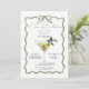 Celebra con estilo con esta elegante invitación de cumpleaños de Martini “Un poquito mayor”. Con una ilustración de copa de martini elegante con detalles de aceituna y un marco de lazo elegante, este diseño es perfecto para una celebración de cumpleaños sofisticada con tema de cóctel.