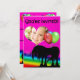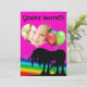 Una invitación temática de cumpleaños con unicornio brillante, intrépido y hermoso que muestra un unicornio místico negro, globos y un fondo del arco iris. ¡La tarjeta de cumpleaños perfecta los amantes de los unicornios!