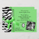 La cinta verde lima y las perlas plateadas con rayas de cebra negras y blancas decoran esta invitación contemporánea para una fiesta de cumpleaños. Sube tu propia foto al marco funky de cebra para personalizar aún más la apariencia. Hay mucho texto personalizable en esta invitación de moda para agregar la información de tu fiesta. Hay un marco adicional de cebra disponible para texto personalizable o puedes eliminar este elemento si prefieres no usarlo. También tenemos este diseño en varios colores. Los colores coordinados en la parte posterior de esta invitación de peluche completan la apariencia y hacen que este diseño premium sea perfecto para casi cualquier ocasión. Si en algún momento necesitas ayuda para personalizar este producto, no dudes en hacérnoslo saber y estaremos encantados de ayudarte. Ten en cuenta que no hay ningún cargo adicional por este servicio personalizado.