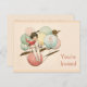La imagen en esta invitación fue adaptada de una postal vintage. muestra a una niña flotando en 7 globos. El mensaje se puede personalizar así como la edad en el globo.
