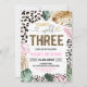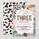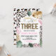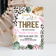 Celebra su gran hito con esta invitación de cumpleaños con estampado de leopardo "Young Wild and Three". Con características de manchas de animales de moda y exuberante vegetación de la jungla, es la forma perfecta de establecer un tono elegante para la fiesta de cumpleaños número 3 de una niña. Esta plantilla editable es fácil de personalizar con los detalles específicos de su evento, lo que garantiza que sus invitaciones sean tan únicas y feroces como su pequeño.