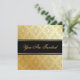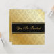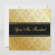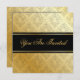 Tarjeta de invitación de celebración elegante con hermoso patrón de damasco dorado y áreas negras para texto. Puede personalizar fácilmente los detalles de su invitación en el anverso y reverso de la tarjeta.