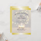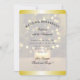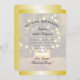 Invitación de desayuno de boda de Navidad con bordes de color dorado y reverso. Un árbol brillante y una imagen de vela son el fondo para la tipografía moderna con el texto curvo "desayuno de boda" en la parte superior. A continuación, invite a los invitados especiales a cenar con los recién casados y deséenles "buen viaje" en su luna de miel.