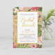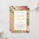 Esta invitación única de desayuno nupcial presenta un hermoso patrón tropical con tipografía dorada sobre un fondo de textura kraft.