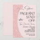 Diseña tu invitación de despedida de concurso con brillo rosa y un bonito lazo encima. Esta invitación de despedida es ideal para concursos nacionales, o incluso para una fiesta de despedida de graduación. Personaliza el texto y agrega los detalles de tu evento para obtener hermosas invitaciones disponibles con varias opciones de formas y acabados de papel, o como descarga para enviar a los invitados al instante.
