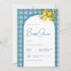 Esta invitación soleada con adorno mediterráneo y limones es una forma encantadora de dar la bienvenida a la futura novia.