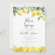 Esta moderna invitación de despedida de soltera con limón en acuarela se puede personalizar con su información en tipografía elegante y la dirección web del registro de bodas en el reverso. Diseñado por Thisisnotme©