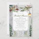 Invitación de Despedida de Soltera con Farol Botánico de Pinos Rústicos de Invierno. Hermosas invitaciones de despedida de soltera para boda de invierno con farol nevado con ramas de pino botánicas rústicas y pinos. Este diseño de boda moderno personalizado se puede personalizar fácilmente con los detalles de su boda.