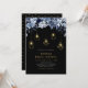 Invite a sus invitados a su día de celebración especial con esta hermosa invitación de despedida de soltera. Este diseño sofisticado cuenta con hermosas flores de tono azul y luces de cuerda doradas con accesorios de luz geométricos. Puede personalizar el texto y el color de fondo. Invitación perfecta para una despedida de soltera moderna de invierno o una ducha de boda.