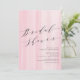Diseño moderno de despedida de soltera con suaves pinceladas de acuarela en tonos rosados y una fuente de caligrafía elegante. Disponible en nuestra tienda en azul y verde.