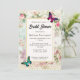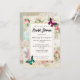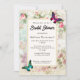 Una invitación de despedida de soltera. 'Despedida de Soltera' escrito en una fuente de letra de moda. Diseñado con mariposas rosadas y verdes caprichosas revoloteando. El fondo es un collage vintage desgastado con rosas rosadas y otros elementos decorativos. Un marco de color crema con un borde dorado superpuesto donde puedes agregar la información de tu fiesta. Un ambiente chic y antiguo.
