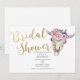Invitación de Despedida de Soltera Cráneo de Vaca Floral Dorado