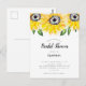 Invitación de tarjeta postal de despedida de soltera con tema de girasol elegante. Diseñado e ilustrado con amor por Kristine Lee Designs www.kristineleedesigns.com