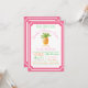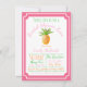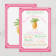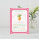 Invitación de despedida de soltera de piña con una hermosa piña en un fondo fresco rosa y blanco. Esta invitación tropical para despedida de soltera se personaliza fácilmente para tu evento simplemente agregando tus detalles en el estilo de fuente y redacción de tu elección. También puedes agregar un color de fondo y eliminar o cambiar el tamaño de la piña en la parte trasera. Este es un diseño impreso sin lámina real, brillo, etc.