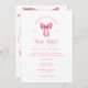 Celebra a la futura novia con estilo con nuestra linda invitación "Bows & Babes Girls Club" y otros artículos a juego. Con una elegante pintura en acuarela de lazos y cintas rosadas, esta invitación capta perfectamente el espíritu de una despedida de soltera femenina y divertida.