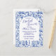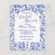 Personaliza esta hermosa invitación de despedida de soltera estilo chinoiserie azul y blanco.