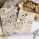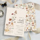 Esta elegante invitación de despedida de soltera presenta una hermosa mariposa pintada a mano con acuarela y flores silvestres dispuestas como un hermoso ramo. La parte trasera incluye un patrón coordinado. Encuentra artículos coincidentes en la Colección de Despedida de Soltera Boho Wildflower.