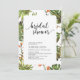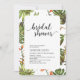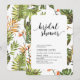 Celebra tu día especial con esta elegante invitación de despedida de soltera que presenta tipografía simple y elegante y patrones tropicales. Perfecta para la ducha de boda de verano, fiesta de tema tropical y boda de destino.
