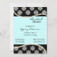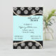 Hermosa invitación de boda / despedida de soltera realizada en rosa, negro y blanco. Elegante negro, con un diseño floral blanco, en la parte superior e inferior de la invitación y un aquamarina sólido, en el medio. Gráficos de un collar de perlas bordeando el área de texto. Texto en negro totalmente personalizable para su evento. Hermosa invitación que la novia recordará toda su vida.