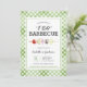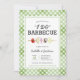 Enciende la parrilla y celebra a la feliz pareja con esta invitación para una ducha de boda de barbacoa "I DO"! Perfecta para una fiesta al aire libre divertida e informal en el patio trasero, este diseño presenta un fondo de cuadros gingham verde apagado, una ilustración de brocheta jugosa y una mezcla de tipografía en negrita y de escritura.