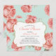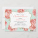 Invite a sus invitados a su día especial con esta invitación floral shabby chic que presenta un marco dorado con un hermoso fondo de patrón de flores de menta y coral.