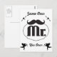 Invitación con bigote. Simplemente haga clic en editar/personalizar/personalice aún más y agregue sus datos haciendo clic en el botón de agregar texto en la parte superior izquierda de la herramienta de diseño. Diviértase agregando su tipografía personalizada a esta divertida tarjeta postal de boda retro cottagecore. O utilícela como tarjeta de accesorio de foto divertida para el día de la boda para el novio y los invitados para muchas fotos divertidas para todos.